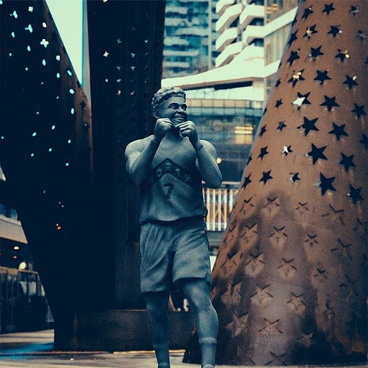 Before his Miami Heat arrived in town, Kyle Lowry wrote a note to his Toronto family, building anticipation for an emotional game that the Raptors lost 114–109. Part of what the mayor declared a day in Lowry’s honour was a lifesize sculpture created by TSN, which made its way around the city, as it was John Tory’s assertion he deserved one after leaving: