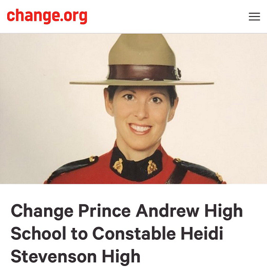 Prince Andrew High School in Dartmouth, Nova Scotia, was named in 1960 for Queen Elizabeth’s newborn third child. But this turned problematic after Andrew became the subject of allegations tied to the late Jeffrey Epstein. The name of recently slain RCMP constable Heidi Stevenson sounds like an ideal change, even if it has actual opposition: