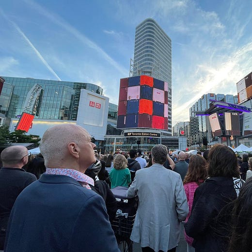 Toronto Blue Jays president Mark Shapiro asked the city to end the pandemic-era weekend program that closes a street south of Rogers Centre to vehicular traffic. The mayor agreed to reconsider that which he previously defended. John Tory also attended the launch of an exhibit on what internal combustion engines hath wrought upon the climate: